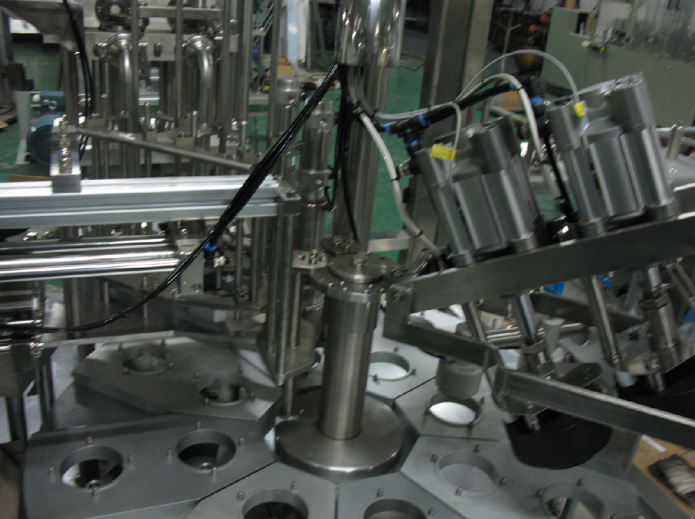 SKB-R旋轉(zhuǎn)式紙(塑/鋁)杯灌裝封口機(jī),具有自動(dòng)下杯,自動(dòng)定位灌裝,自動(dòng)吸蓋,自動(dòng)壓蓋,自動(dòng)出杯,液位自動(dòng)控制功能. 本機(jī)用于紙(塑/鋁)杯裝鮮奶,酸奶,純凈水,冰水,果汁飲料,豆奶,奶制品,調(diào)味品,洗滌化工液,固體顆粒等介質(zhì)的充填封口. 設(shè)備低能耗,占地面積小,產(chǎn)量高為最顯著特點(diǎn).并配有進(jìn)口PLC、電機(jī)、氣動(dòng)元件、控制元件,確保設(shè)備可靠,穩(wěn)定運(yùn)行。 可根據(jù)用戶(hù)需求,設(shè)計(jì)新機(jī)型。 圖片,參數(shù)僅作參考,如有改動(dòng),恕不另行通知。