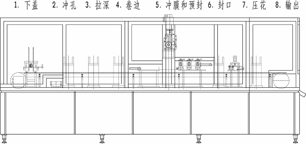 SKM-A系列鋁箔易撕蓋生產(chǎn)設(shè)備 該系列設(shè)備可用來(lái)生產(chǎn)202-603#易撕蓋,尤其適合于202-401#小型的鋁易撕蓋和異形易撕蓋。自動(dòng)完成下蓋、沖孔、拉深、卷邊、沖鋁箔預(yù)封、封口、壓花、輸出等功能。獨(dú)立伺服控制的各功能模塊,可單獨(dú)調(diào)節(jié)參數(shù),并可實(shí)現(xiàn)高速響應(yīng)及同步動(dòng)作。 可根據(jù)用戶需求,設(shè)計(jì)新機(jī)型。 圖片,參數(shù)僅作參考,如有改動(dòng),恕不另行通知。
